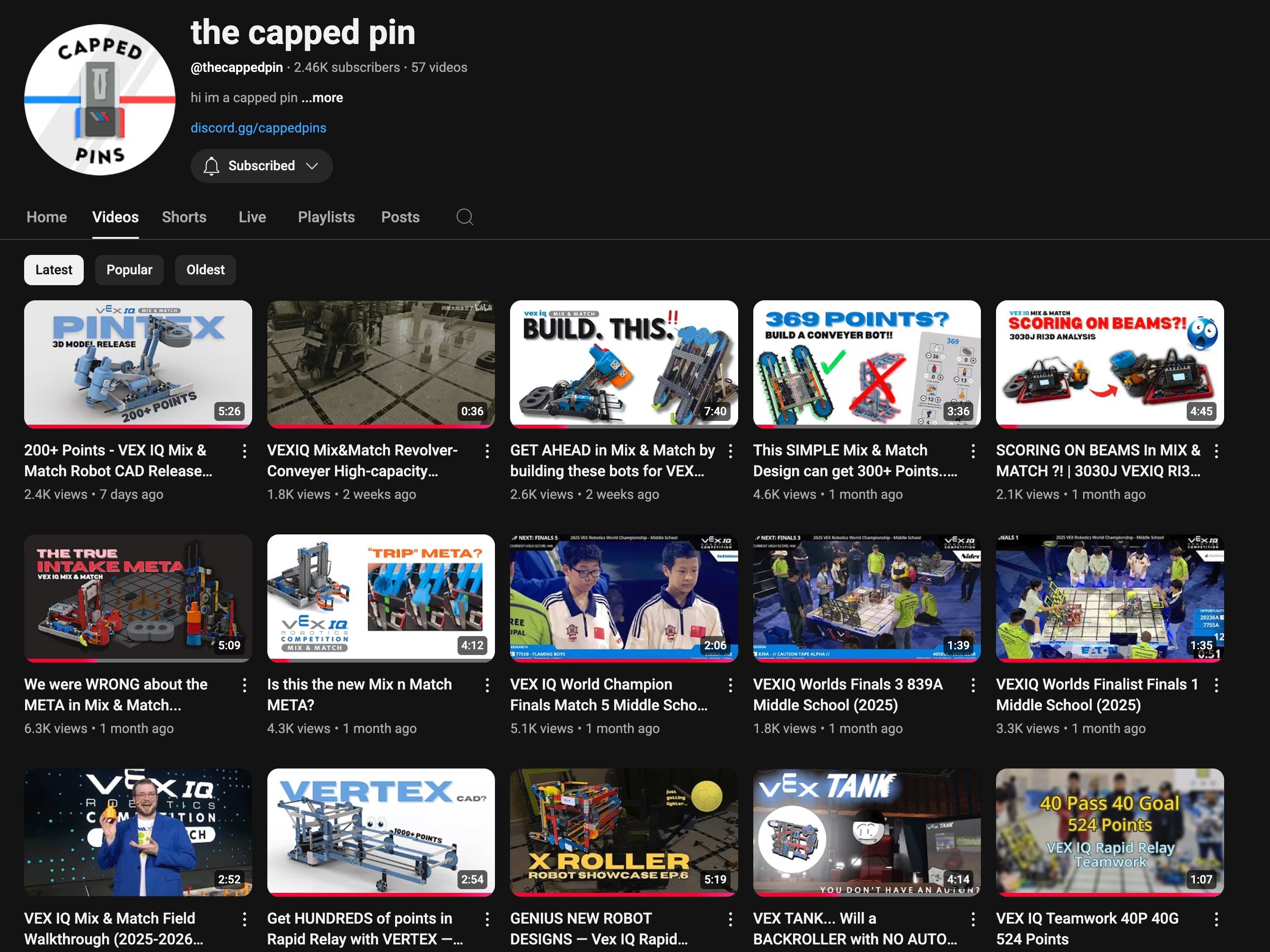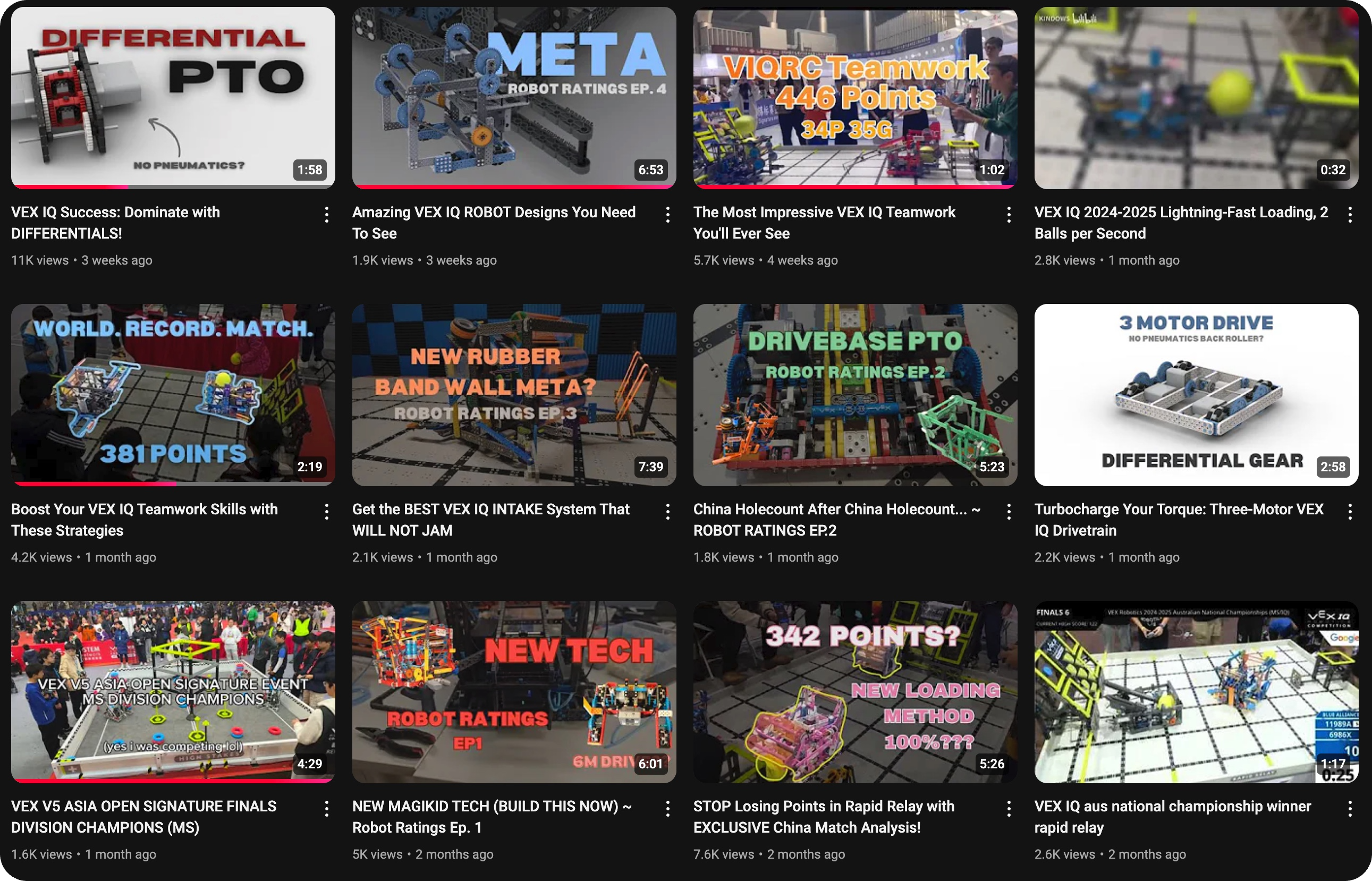 - Biggest Student-Run VEX IQ YouTube Channel (4.1K+) to provide free educational resources for beginners and high-level competitors alike