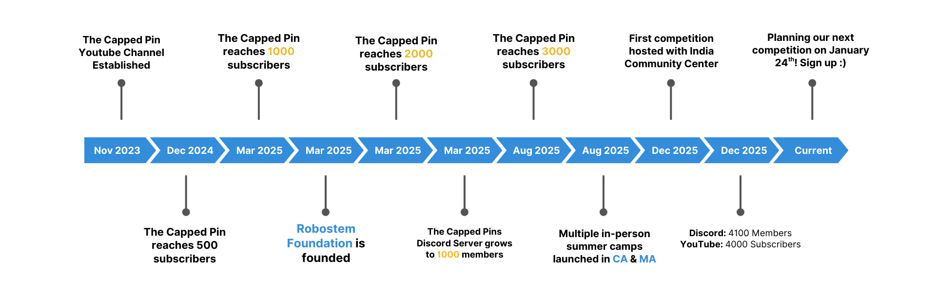 We are a group of high schoolers and middle schoolers with a passion for robotics and education. RoboSTEM began as a small group helping each other on Discord, and grew to a YouTube channel with over 4,100 subscribers. Since then, we’ve grown into a nationwide network (CA & MA) offering workshops and coaching, all led by young creators.